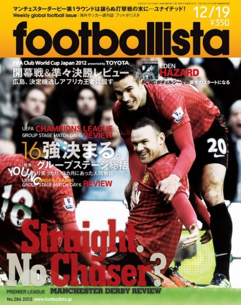 ◯12-13 UEFA CHAMPIONS LEAGUE CLグループステージ 最終節レビュー/決定、16強。昨季王者を敗退に追い込み、“貴婦人”復活/セルティックは逆転、ガラタサライは逃げ切って最後の3枠に ◯[特集] CLグループステージ総括/泣いたり笑ったり、3カ月にあった人間物語 ◯12-13 UEFA EUROPA LEAGUE ELグループステージ 最終節レビュー/シュツットガルト、リバプール、トッテナムらが滑り込み! ◯各国リーグ(英/伊/独/仏/蘭/西)/首位攻防ダービー、青の堅城で92分、赤が笑う!/間違いなく今季ベストバウト!ローマ、壮絶に撃ち勝つ/バルセロナ、15戦14勝でも内容はやっぱり「?」 ◯FIFA Club World Cup Japan 2012 presented by TOYOTA 開幕戦&準々決勝レビュー&準決勝プレビュー/広島、決定機逸しアフリカ王者に屈する ◯INTERVIEW:エデン・アザール(チェルシー)/FCWCがチェルシーでの栄光のスタートになる ◯footballista World Topics:互いに譲らず…スナイダー、冬のインテル退団が濃厚に ◯連載:スペインサッカーを笑え!/ドイツサッカー誌的フィールド ◯コラム:山中忍/小川由紀子/篠崎直也/佐藤峰樹