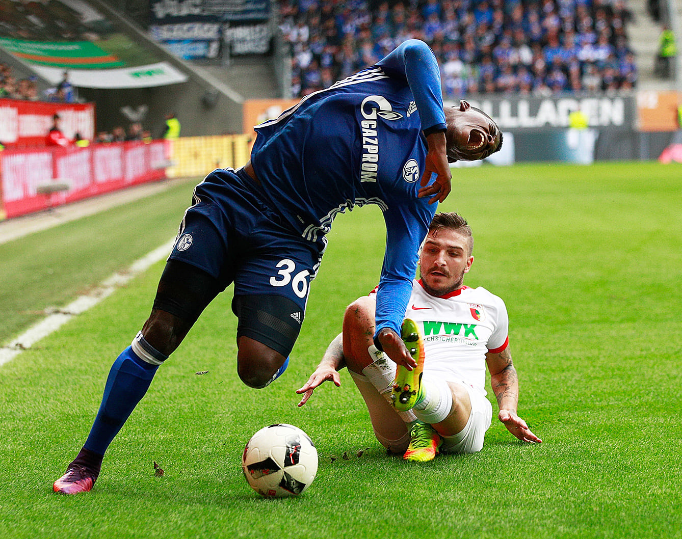 悲劇に見舞われたのは、シャルケ加入から間もない2016年10月だった。アウグスブルクのDFコスタス・スタフィリディスから「ホラーファウル」(『WAZ』紙)を受け、左足の腓骨および足首骨折、さらに内側副側靭帯を断裂。同年夏にバーゼルからクラブ史上最高額の2250万ユーロで加入し、ドイツでの飛躍が期待されていた当時19歳のエムボロは一転して、「複数の専門家がハイレベルなサッカーを続けられるか疑問視」(ハイデル元SD)するほどの重傷を負い、選手生命の危機にさらされた。