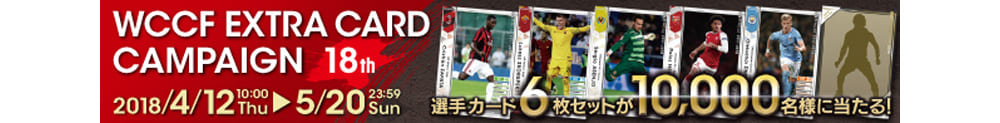 その『WCCF』で4月12日から、「WCCF エクストラカード キャンペーン第18弾」がスタート! 参加登録後にゲームをプレイ、条件を達成するごとに応募券が獲得でき、抽選で10,000名に本キャンペーン限定となるエクストラカード6枚セットが当たる。ぜひチェックしてみてください!