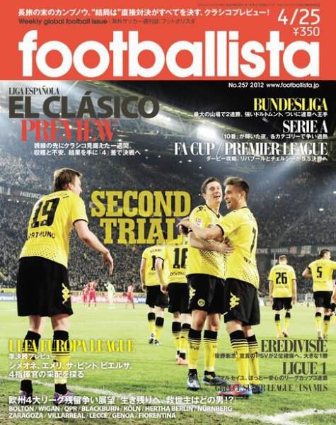 [LEAGUES & COMPETITIONS] ○LIGA ESPANOLA / リーガエスパニョーラ] – 視線の先にクラシコ見据えた一週間。収穫と不安、結果を手に「4」差で決戦へ 4.21 “EL CLASICO” SPECIAL PREVIEW – 4差で迎える“決戦”クラシコ。対等ではない両雄、どう出る? BARCELONA vs REAL MADRID – はるか高みでの争いをよそに…オトラ・リーガは予測不能 [短期集中連載] – 進化を続ける組織の哲学 / バルセロナ INTERVIEW ギジェルモ・アモール(育成部門スポーツディレクター) ○BUNDESLIGA / ブンデスリーガ 最大の山場で2連勝。強いドルトムント、ついに連覇へ王手 ○SERIE A / セリエA 「10番」が輝いた夜。各カテゴリーで争い過熱 [CALCIOおもてうら / 第239回] – オーナーの本業と反比例。好不調クラブの奇妙な符合 [FA CUP / FAカップ] – ダービー攻略、リバプールとチェルシーが5.5決勝へ [PREMIER LEAGUE / プレミアリーグ] – まさか…後、ユナイテッド「5」差は堅持 [ヘンリー・ウィンターのA MOMENT IN TIME / 第95回] – バルセロナに盾突いた!チェルシーのCLスタート地点 [ 西部謙司の戦術リストランテ / 第112回] – “リフォーム”で復調したアーセナル [欧州4大リーグ残留争い展望] – 「生き残りへ、救世主はどの男!?」 BOLTON / WIGAN / QPR / BLACKBURN KOLN / HERTHA BERLIN / NURNBERG / ZARAGOZA / VILLARREAL LECCE / GENOA / FIORENTINA ○EREDIVISIE / エールディビジ – 「優勝断念」宣言のPSVが2位確保へ、大きな1勝 ○LIGUE 1 / リーグ1 – マルセイユ、ほっと一安心のリーグカップ3連覇 ○GREECE SUPER LEAGUE / ギリシャ・スーパーリーグ ○USA MLS / アメリカ・メジャーリーグサッカー [JAPANESE FOOTSTEPS] – 精彩欠いた吉田を横目に、ハーフナーがしてやったり [11-12 UEFA EUROPA LEAGUE] EL準決勝 第1レグ プレビュー – シメオネ、エメリ、サ・ピント、ビエルサ。4指揮官の采配を探る [連載コラム] 工藤 拓 / 堀 秀年 / チヅル・デ・ガルシア / 佐藤峰樹