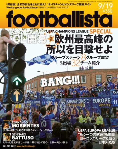 12-13 UEFA CHAMPIONS LEAGUE [特集]欧州最高峰の所以を目撃せよ 1シーズン使える!12-13チャンピオンズリーグ観戦ガイド ○INTERVIEW:フェルナンド・モリエンテス ○見て、観て、燃えて、書き込んで・・全125試合スケジュール ○大会展望階層別にみる、GSを満喫する7つの着眼点 ○グループステージ8グループ展望&32チーム紹介 ○INTERVIEW:ジェンナーロ・ガットゥーゾ(シオン) ○GROUPA ポルト/ディナモ・キエフ/バリ・サンジェルマン/ディナモ・ザグレブ ○GROUPB アーセナル/シャルケ/オリンピアコス/モンペリエ ○GROUPC ミラン/ゼニト/アンデルレヒト/マラガ ○GROUPD レアル・マドリー/マンチェスター・シティ/アヤックス/ドルトムント ○GROUPE チェルシー/シャフタール/ユベントス/ノアシェラン ○GROUPF バイエルン/バレンシア/リール/BATEボリソフ ○GROUPG バルセロナ/ベンフィカ/スパルタク・モスクワ/セルティック ○GROUPH マンチェスター・ユナイテッド/ブラガ/ガラタサライ/CFRクルージュ ○稲本が出会い、中村が切り拓き、本田や香川が身近にした…CL日本人史 ○12-13 UEFA EUROPA LEAGUE “もう一つの欧州”ヨーロッパリーグで戦う、日本人がいる