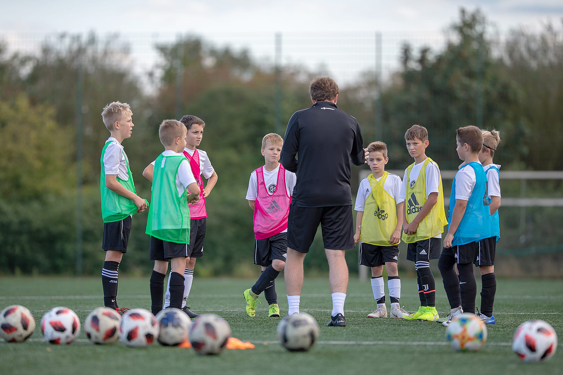 「いえ、週末にトーナメント形式で定期的に行うものです。サッカーフィールド1面に8つのフニーニョ用のフィールドを設け、トーナメントを行います。1登録チームにつき4人ずつ2組を参加させて昇格(CLフィールド)、降格(ツバイテリーガフィールド)を繰り返すことで、最終的に同じレベル同士のチームが試合を繰り返すようになります。トーナメントとはいえトロフィーが用意されるわけでもありませんし、コーチたちがピッチ外から指示を出す必要もありません。交代に気をつけ、いくつかヒントを与える程度で済みます。指導者の数が足りなければ、保護者がピッチ横で見守るだけでも問題ありません。みながピッチ上で常にプレーし続けられる時間も長く、選手の成長の点から見ても理想的です。各チームが持ち運び可能な小さなゴールを持ち寄り、フィールドを作れば済みます。今のところはうまく行っていますね」