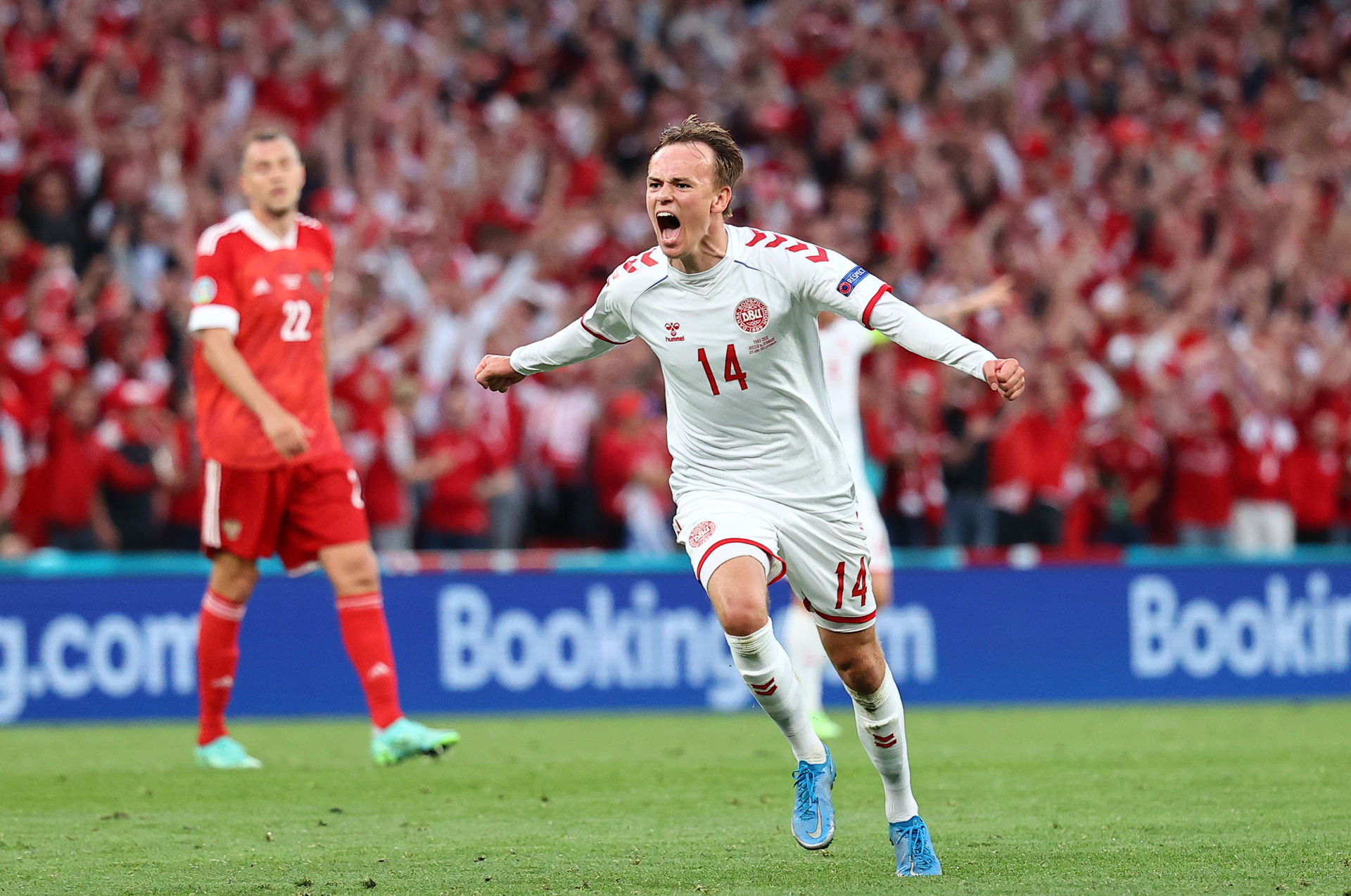 そして、彼らには新たなスターも誕生した。今大会の主役になりつつある20歳のミッケル・ダムスゴーだ。エリクセンの代役として起用された若武者は、ロシア戦で先制ゴールをマークして一躍時の人になった。