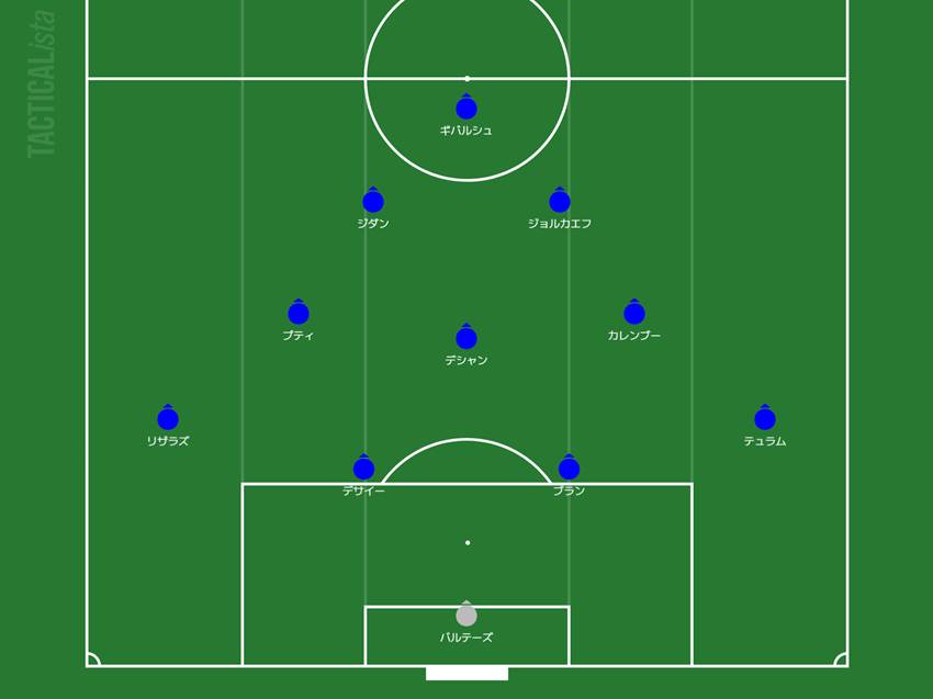 冬の市場でアタランタから獲得したルックマンが左シャドー。この補強は効きました。先制点はエリック・ガルシアのバックパスをGKジョアン・ガルシアがコントロールしそこなってそのまま入っているのですが、流れとしてはゴール内からかき出したボールをルックマンが決めています。3点目はきれいなワンタッチシュート。最初がオウンゴールでなければ2得点でした。