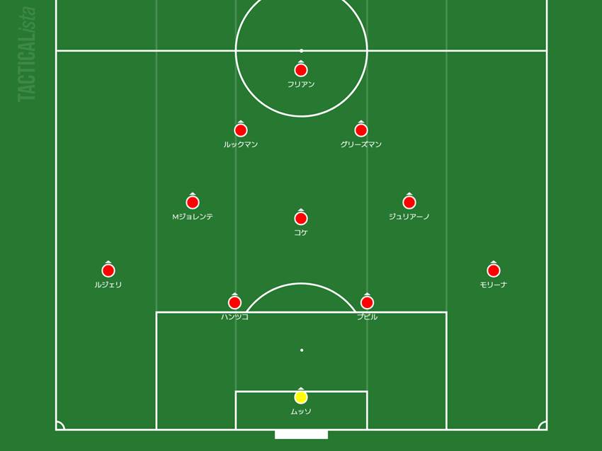コパ・デルレイ第1レグ、バルセロナ戦のアトレティコ・マドリーの布陣です(図3)。