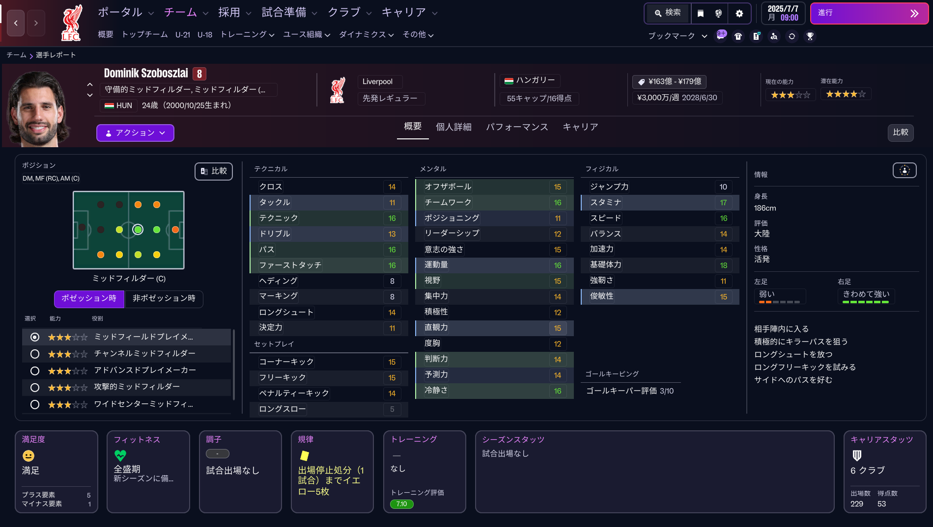 彼らは総じてテクニックの評価が高い。ソボスライはテクニック、パス、ファーストタッチの項目が極めて高い「16」という数値をデータが示している。ハンガリー代表では不可欠なプレーメイカーなのだからこれも当然で、FKという武器も持っている。