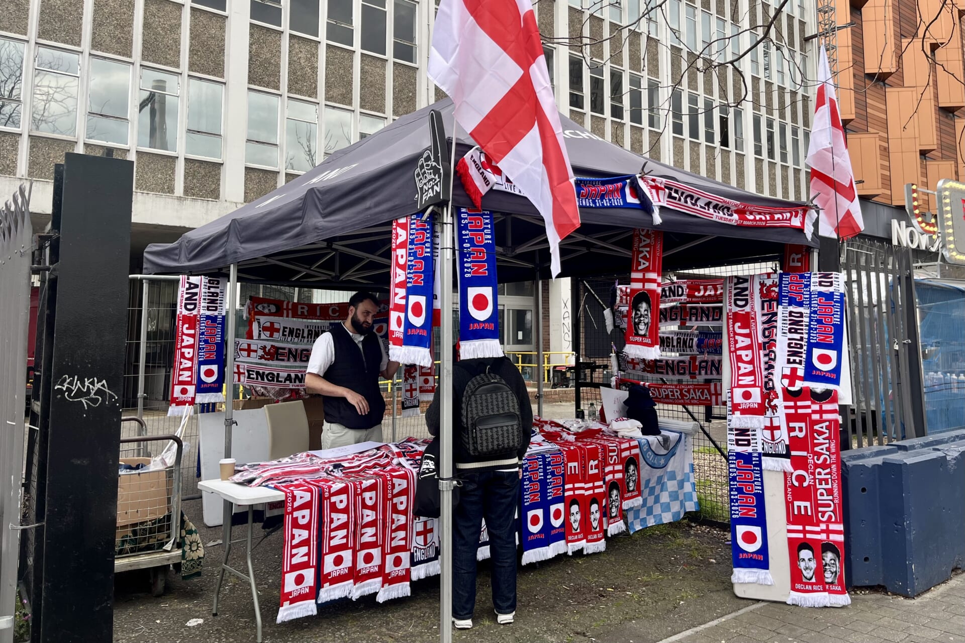 スタジアム前のマフラー屋台(Photo: Yukiko Ogawa)