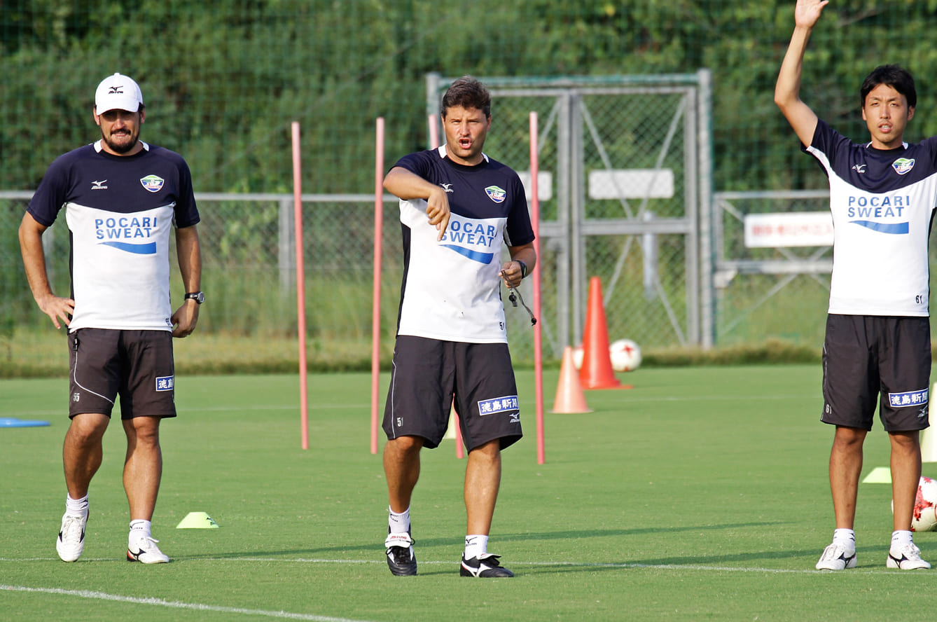 「まったくそうは思いませんね。もちろん説明しないで『臨機応変にやれ』と言ってもできるはずもないですが、『こうなったら、こうしよう』と説明しておけば、それを状況に応じて実践してくれる力を持っています。非常に日本人選手たちの理解力は高いと感じています。毎日の練習でいろいろなテーマをもってやりますが、それもすぐに彼らの頭に入っていくと感じます。別に徳島に限らず、他のチームを見ていても感じます。4バックでやっていたチームが、3バックにサッと変えたりもできるでしょう。そうした戦術的なパフォーマンスは非常に高いです。試合中もそうですし、試合と試合の間が3日か4日でも、違うシステムに変えてこられる。それは賢い選手たちでなければ不可能なことです。徳島の選手たちを見ていればわかります。伝えることを伝えれば、しっかり理解してくれる選手たちです」
