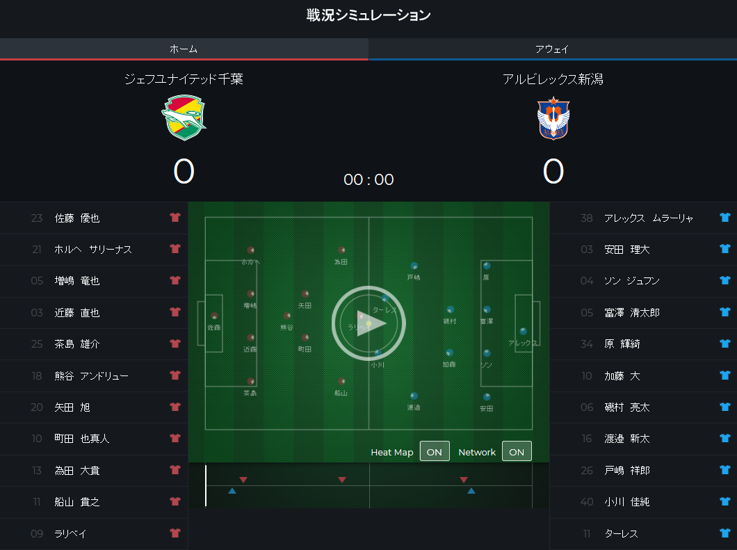 下馬評は徳島優位の一戦だが、「WARP」の戦況シミュレーションで先制するのは京都。序盤から徳島陣内でプレーを続け、最後は闘莉王がネットを揺らした。しかし、ここから流れは一変。徳島が圧倒的に押し込むと、後半にマティアスの2ゴールで逆転に成功する。