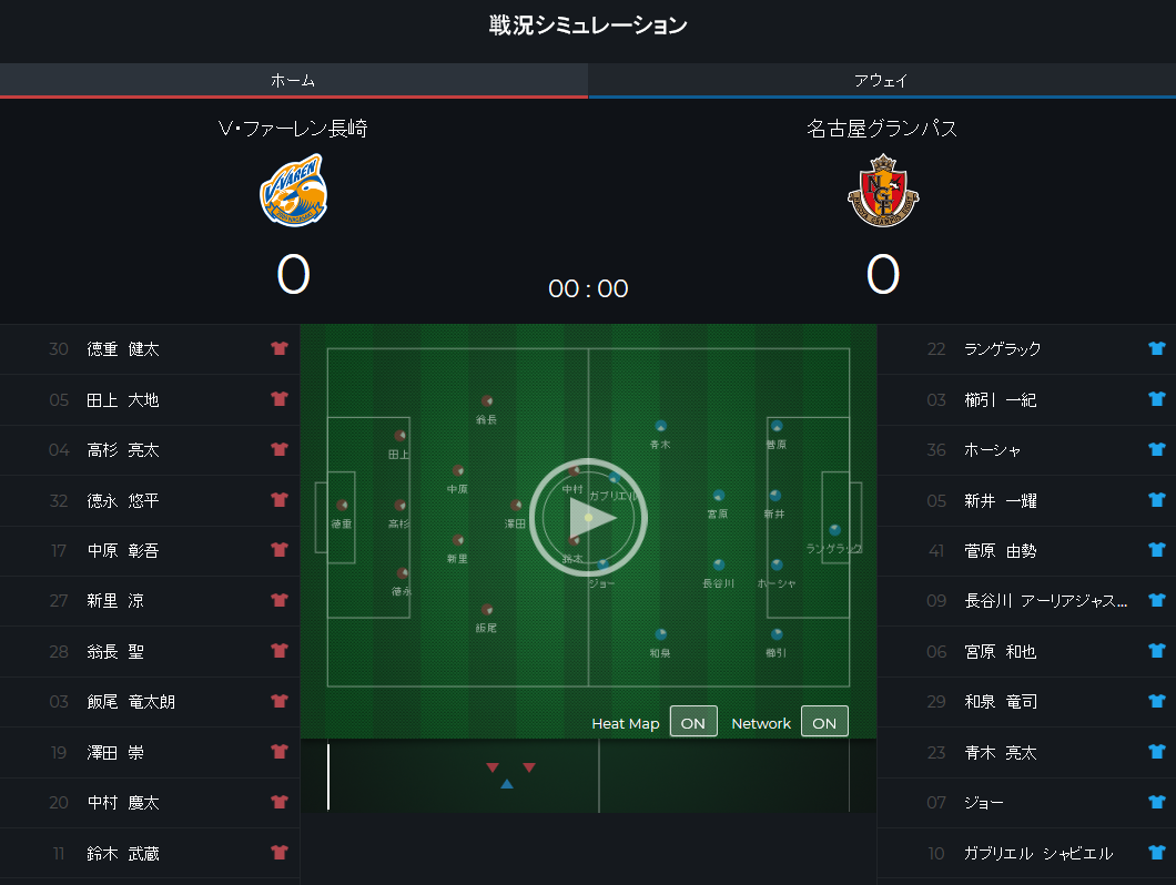 このように両者の戦い方を展望した西部さんの結論は2-2のドロー。対する「WARP」は長崎の勝利とした。AIシミュレーションでは、西部さんもキーマンに指名した鈴木の2ゴールで名古屋を下すと予測している。